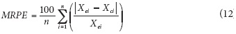 where Xei is the experiment value; Xci is the estimated value from every model and . is the number of observations.