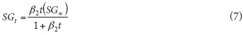 were SGt, is the solute gain at time t, SG∞ is the corresponding quantity at infinite time (i.e., at equilibrium) and β2 (min-1) is the constant related to the rate of solute transport to inside.