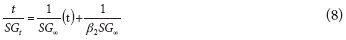 The equilibrium solute gain (SG. and model constant .. were estimated from the slope and intercept of the plot (t /SG.) versus t of equation (8).