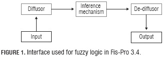 SPP is a synthetic variable that links together the soil analytical and synthetic properties. Analytical properties are those that directly give a characterization of the soil, such as exchangeable sodium percentage and macroporosity, whereas synthetic properties are those that give an idea of the status of the soil, specifically through the energy flow, as heat or electricity, and are indirectly determined by the thermal conductivity and resistivity. The model for the determination of this parameter was set up with fuzzy logic. The interface used to process the data was Fis-Pro 3.4. Figure 1 shows a scheme of the fuzzy logic processing. The input variables were total pore space, thermal conductivity and ESP, whereas the output was SPP.