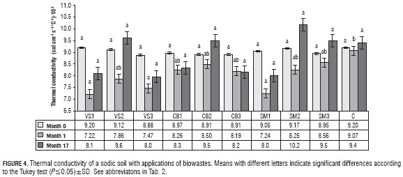 Porosity is the most important macroscale parameter for the thermal conductivity of dry soils: the thermal conductivity of a dry soil linearly increases as the porosity decreases (Yun and Santamarina, 2008). As seen in Fig. 4, the thermal conductivity at the first month of evaluation with VS1, VS3 and SM1 significantly differed from control. This means that in these plots, the soil underwent an increase in air volume.