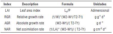 The NAR is an indirect measure that determines the photosynthetic efficiency of plants. This variable is directly related to the leaf area, layout and age of the leaves and also affects the internal metabolism of the plant as a response to external factors through the respiration process (Torres-Moya et al., 2016).
