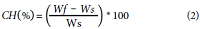 Moisture content of the fruits was measured three times per week in each treatment. Two mm slices were cut. The fresh weight (wf) was measured in each of the samples with an electronic balance, PB3001 (0.1 g precision). The samples were placed in an oven at 105°C for approximately two months and the dry weight (ws) was taken three times per week and the moisture content was calculated with equation 2. The water removed is the amount of water that the fruit is losing during drying.