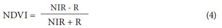 where NDVI is the vegetation index with the standard difference (dimensionless), R is the average reflectivity between 636-673 nm and NIR is the average reflectivity between 851-879 nm.