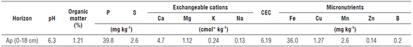 The planting distance in the field was 3x2 m which is considered adequate for monoculture of J. curcas for providing high yields, reducing intraspecific competition, and facilitating fruit harvest and weed control (Ghosh et al., 2007). A randomized complete block design was established with 4 replicates and 24 plants per experimental unit, separated by a border row, for a total of 1,184 plants ha-1. The experiment was carried out in an inceptisol sandy loam soil identified as Typic Haplusterts with 1.2% organic matter (Tab. 1) and good drainage capacity.