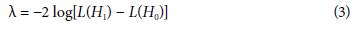 where L(H0) is the value of the likelihood function for the frontier model in which parameter restrictions are specified by the null hypothesis; H0 is imposed, and L(H1) is the value of the likelihood function for the general frontier model (Battese and Coelli (1995). If the null hypothesis is true, then λ has approximately a chi-square (or mixed square) distribution with degrees of freedom equal to the difference between the parameters estimated under H1 and H0, respectively.