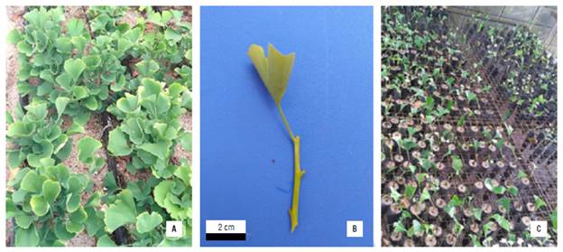Ginkgo biloba L. (Ginkgoaceae) is a deciduous species from Asia whose extracts, leaves, and fruits have been used in the treatment of mental illnesses for more than 2000 years (Zhang et al., 2011). It is one of the most studied and popular medicinal plants with contents of gincolids and flavonoids, free radical scavenging properties, and a proven effect on the human cardiovascular system, particularly in cerebral circulation (Lin et al., 2008; Van Beek & Montoro, 2009; Song et al., 2010; El-Ghazaly et al, 2015). Besides its medicinal potential, gingko also has a high ornamental potential, with fan-shaped leaves, lush color that turns greenish-brown in autumn and yellowish in winter (Tommasi & Scaramuzzi, 2004; Bitencourt et al., 2010).