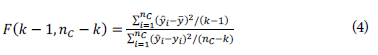 Other figures of merit, which allowed us to evaluate the performance of the calibration model developed were as follows: the F-test with degrees of freedom, (fc-1) (numerator) and (nc-k) (denominator) given by Equation 4: