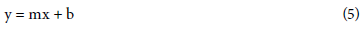 where y is the response variable (dependent); m is the slope; X is the predictor variable and b is the constant of the equation.