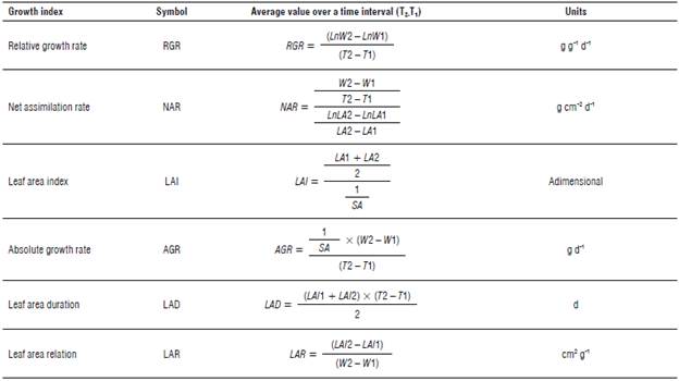 Growth rates were determined from measurements of leaf area, soil area, and dry weight (Tab. 1).