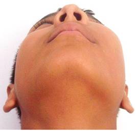 Paciente masculino de 9 años de edad, quien es remitido al servicio por presentar lesión tumoral en maxilar del lado derecho, con tiempo de evolución de un año y seis meses, los antecedentes familiares no son relevantes para el caso y en los antecedentes personales la madre manifestó que presentó congestión nasal.