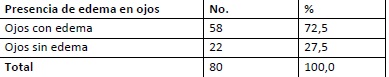 Se destaca en la Tabla 2 que predominaron los ojos con edema macular diabético en la muestra de 80 ojos estudiada para 72,5 %.
