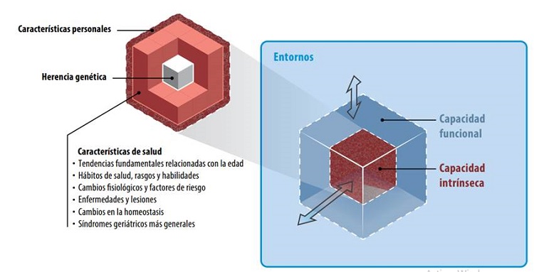 En el informe mundial sobre envejecimiento publicado por la OMS en 2015, el mencionado modelo CIF se explica en su orientación hacia la tercera edad y la pérdida de las capacidades funcionales. (Figura). La capacidad funcional se refiere a los atributos vinculados a la salud que facilitan o entorpecen que el individuo lleve a cabo las actividades que son significativas para él.