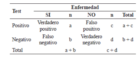 Especificidad: es la probabilidad que un resultado de un test pueda ser negativo cuando la enfermedad no está presente (índice verdadero negativo, expresado como porcentaje).