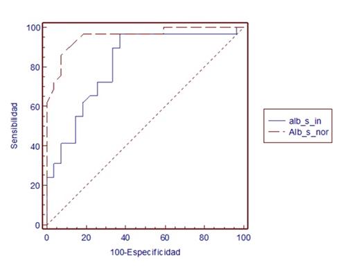 A menudo sucede que un investigador necesita saber qué tan exacta es una prueba de laboratorio en comparación con otra ya establecida. Para poder realizar esta comparación se usa el análisis de las curvas ROC (Figura 1). Para hallar si existen diferencias significativas en la sensibilidad y la especificidad se realizaron comparación de proporciones. Se trabajó con un nivel de significación p<0,05.