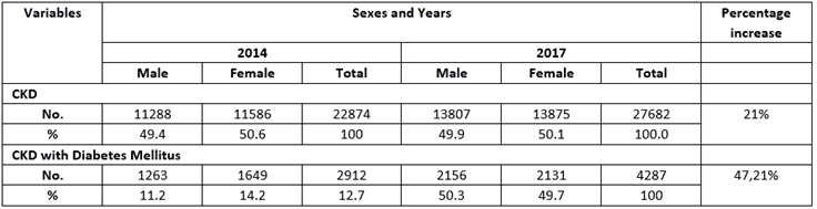 The analyzed variables were the groups of ages, gender, prevalence of CKD patients, and prevalence of CKD patients with Diabetes Mellitus.
