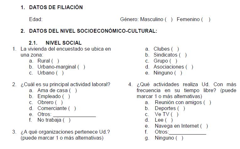 Si usted está de acuerdo con participar en este estudio, sírvase a responder las siguientes preguntas marcando con una “X”, algunas preguntas son de alternativa múltiple. Lea atentamente cada una de las preguntas y alternativas antes de marcar.