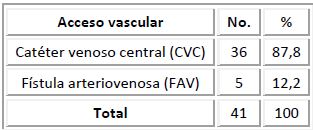 La vía de acceso vascular para HD fue el CVC en el 87,8% de los fallecidos, de ellos el 62,5% CVC temporales. (Tabla 2).