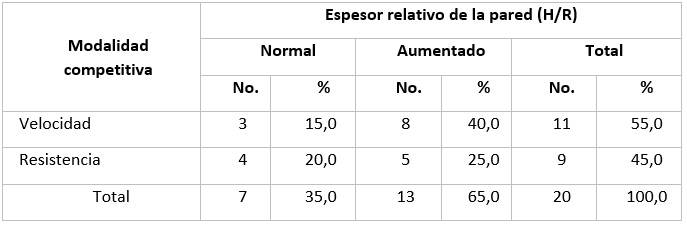 Conclusiones: El espesor relativo de la pared ventricular tuvo una relación significativa con la modalidad competitiva.