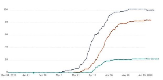 COVID-19 pandemic; case studies: Australia, New Zealand and Cuba