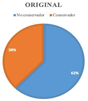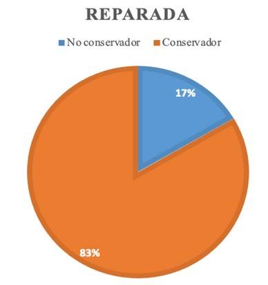 Se obtuvieron los siguientes valores: la elección previa a ser reparada de tratamientos conservadores fue de 38 % y no conservador de 62 %. (Figura 1).