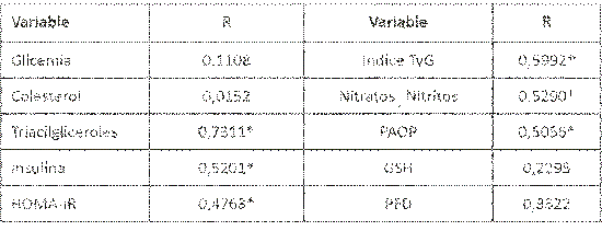 El índice de Lee, estimado a los 90 días, se correlacionó positivamente con la concentración de triacilgliceroles, insulina, nitratos y nitritos, PAOP y con los índices HOMA-IR y TyG. (Tabla 4)