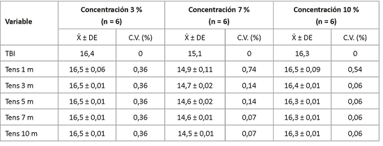 Las cifras de desviación estándar mostraron poca dispersión de los datos con respecto a la media y los valores de los estadígrafos t calculados fueron significativos (p<0,05) (t >2,13 para 4 grados de libertad e intervalo de confianza del 95 %).