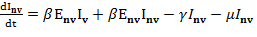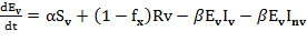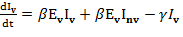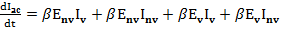 La velocidad de nuevos contagios es proporcional al número de infectados (Inv e Iv) y de susceptibles expuestos (Ev y Env) que se pongan en contacto.