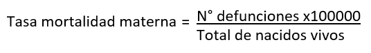 Se emplearon las siguientes fórmulas como base para el cálculo de las tasas: