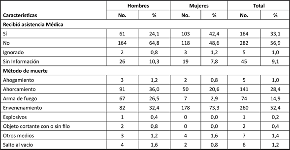 Se encontró que 56,9 % de los adolescentes que murieron no recibieron asistencia médica. De los que sí, 62,8 % fueron mujeres (103 casos).
