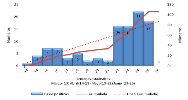 Los casos estudiados fueron los reportados positivos de la COVID-19 notificados a la Dirección Municipal de Higiene y Epidemiología en los primeros 90 días de la pandemia, durante 13 semanas, de marzo a junio de 2020.