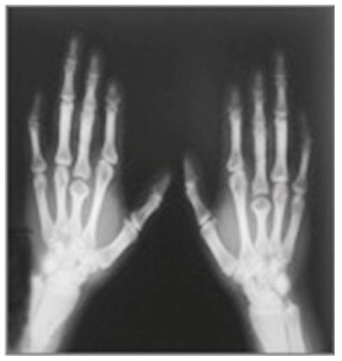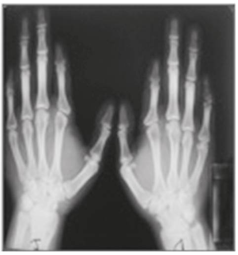 Centrándonos en primer lugar en la braquidactilia del caso 1, caracterizada por el acortamiento del tercer metacarpiano, en principio discreparía con el diagnóstico de braquidactilia tipo A4, pasando a ser una especie de mezcla de los tipos A4 y E, o, quizás, una nueva variedad no catalogada, ni registrada todavía entre las que están en fase de clasificación (A5 y A6, posible A7).