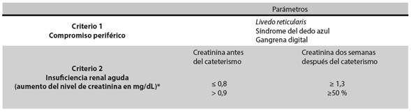 De acuerdo con el grado de certeza diagnóstica, el síndrome de embolización por colesterol se clasifica en dos categorías (Tabla 2):