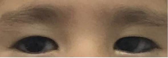Hallazgos relevantes en el examen físico: perímetro cefálico 45 cm (< P3); talla 87 cm (-3.59 DS); peso 12 kg (-2.25 DS); diámetro intercantal externo (DICE) 7,8 cm (+1 DS); diámetro intercantal interno (DICI) 2,8 cm (0 DS); diámetro interpupilar (IP) 4,5 cm (-2 DS). Facies dismórfica caracterizada por depresión bitemporal, fisuras palpebrales estrechas ligeramente inclinadas hacia abajo, pliegue epicántico marcado en el ojo izquierdo, escleróticas grisáceas (Figura 2), incisivos prominentes y micrognatia. Hipotonía marcada, obesidad central insinuada, hipoplasia del pezón derecho, cifoescoliosis, sinostosis radioulnar izquierda, clinodactilia bilateral del quinto dedo (Figura 3). La impresión diagnóstica fue de síndrome dismórfico de probable origen genético. Se hizo hibridación genómica comparativa por microarreglos (HGCm) que mostró una deleción en homocigosis de 0.153 Mb en 8q22.2 que compromete el gen VPS13B y ha sido relacionada con el síndrome de Cohen, OMIM #216550. Se hizo dicho diagnóstico por microdeleción (Figura 4).