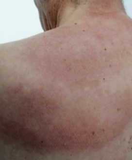 Escleredema diabeticorum: generalmente ocurre en hombres con diabetes insulinodependiente y control metabólico deficiente (5). Su prevalencia varía entre el 2,5 y el 14 % (21). Se produce por glicosilación de las fibras de colágeno que altera su degradación. Además, la glucosa puede estimular la proliferación de fibroblastos y la síntesis de matriz extracelular. Por otro lado, la hiperinsulinemia incrementa la producción de colágeno, dando lugar a un engrosamiento simétrico y difuso con un endurecimiento de la piel por exceso de mucopolisacáridos ácidos en la dermis (40), afectando el cuello, el tronco y los miembros superiores, evitando las manos y los pies (Figura 2). En muchos casos, el escleredema no es fácil de identificar durante la inspección, para evidenciarlo se requiere de la palpación de la zona indurada. Entre los tratamientos descritos se incluye agentes inmunosupresores (ciclosporina y metotrexato), pentoxifilina, inmunoglobulina intravenosa, penicilamina, corticosteroides sistémicos e intralesionales, colchicina, radioterapia y fototerapia con luz ultravioleta A (UVA) (41). En general, la enfermedad es autolimitada. Sin embargo, hay casos graves con progresión que pueden causar alteraciones en el movimiento de los hombros y comprometer la función respiratoria (40).