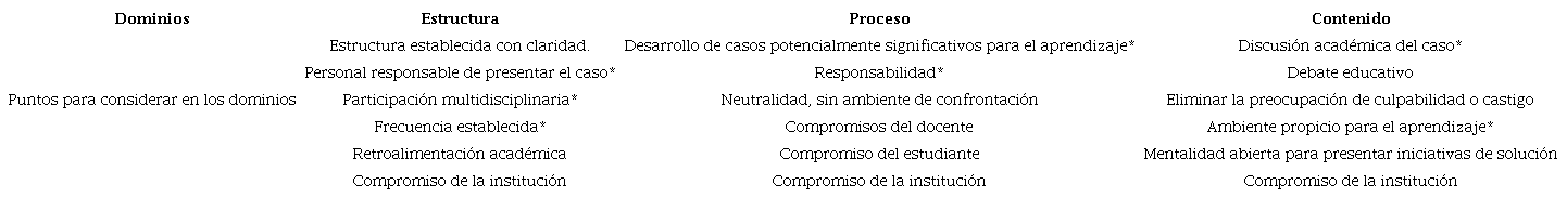 Para su adecuado desarrollo, las M&M deben estimar unos dominios temáticos que faciliten el análisis de los casos y la posible identificación de focos de intervención (25) (Tabla 1).