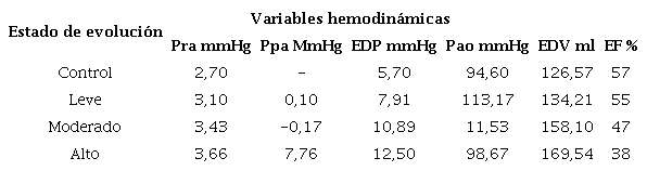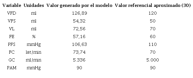 Resultados: al modificar los parámetros de contractilidad y distensibilidad las salidas del modelo se aproximaron a los datos de los pacientes. Mientras que las modificaciones en la inervación nerviosa no produjeron cambios en las variables hemodinámicas.