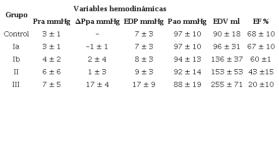 Estos resultados indican que la denervación parasimpática en el modelo no ocasiona, por si sola cambios inmediatos en las variables hemodinámicas, mientras que los cambios en la distensibilidad y contractilidad sí pueden ser responsables de dichas variaciones.