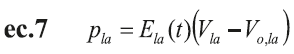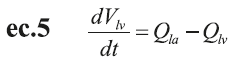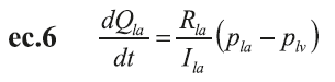 El flujo ventricular izquierdo (Qlv ), el volumen (Vlv ) y la presión (Plv ) se definen por medio de ecuaciones diferenciales simples. Las ecuaciones de la ec.4 a la ec.7 muestran las diferentes relaciones entre presión, volumen y flujo en la cámara cardíaca izquierda (las ecuaciones para el lado derecho son similares) (12,13).