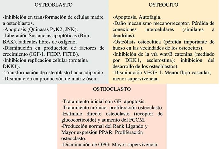 El uso crónico de GE es la causa más común de osteoporosis secundaria 8-10,19, debido a los efectos directos (Figura 2) e indirectos sobre el hueso 29-31.