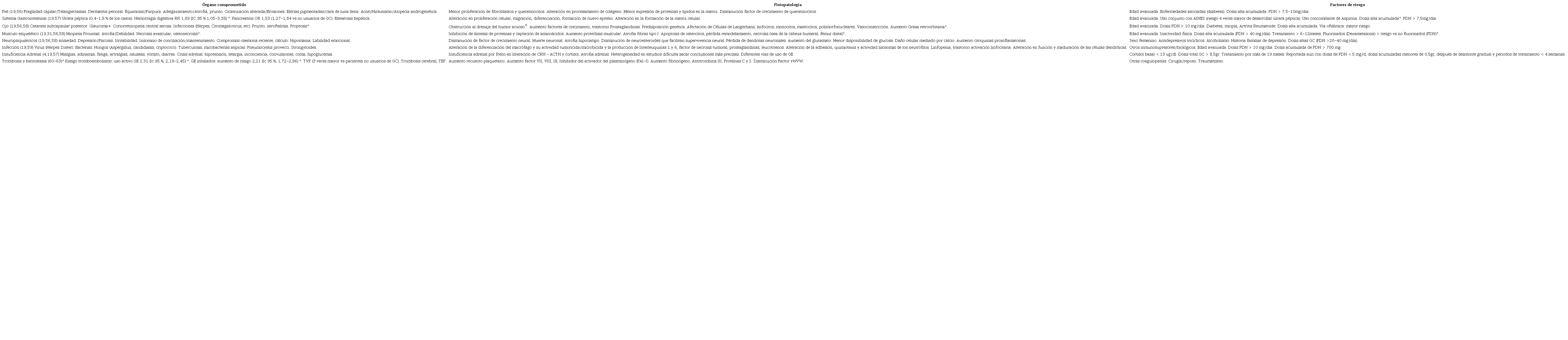 En la Tabla 4 se mencionan otros efectos adversos causados por los GC en diferentes sistemas, su fisiopatología y los factores de riesgo para su presentación.