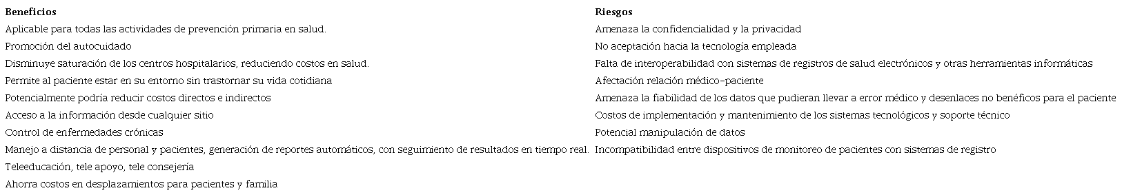 Al respecto, Colombia durante las últimas décadas ha hecho grandes avances en el desarrollo de las TIC, estas estrategias que han demostrado ser aplicables al sistema de salud del país. A pesar de ello, se considera que aún falta camino por recorrer en el tema de la telesalud que, si bien tiene beneficios, presenta riesgos que se deben conocer para mejorar su adopción en nuestro medio (25,35).