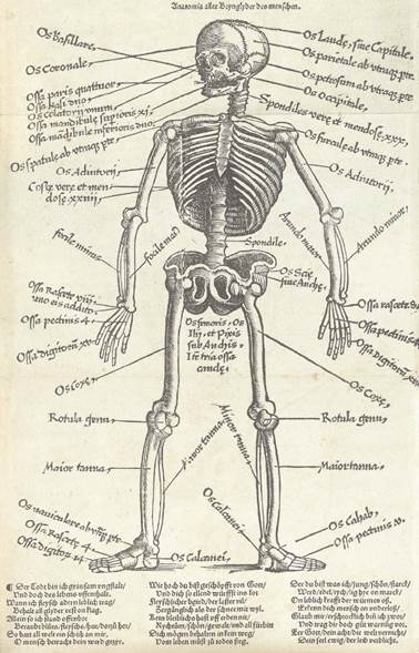Una estrategia en la ilustración médica renacentista fue añadir los nombres de las estructuras anatómicas. Un ejemplo de ello es un famoso esqueleto de finales del siglo Xv, atribuido al francés Richard Helain, quien fue médico de Carlos VIII y decano de la Facultad de Medicina de la Universidad de París (13). Impreso en Nuremberg en 1493, el esqueleto mostraba los nombres de los huesos y, aunque existen controversias en cuanto a su autoría, dicho diseño se había versionado varias veces y sirvió de inspiración a otros como fue el caso de Hans von Gersdorff. Este cirujano alemán publicó en 1517 su Feldbuch der Wundarzney (Manual de cirugía) (Figura 1), uno de los primeros libros sobre amputaciones que también trataba sobre heridas por armas de fuego (14), cuyas xilografías fueron realizadas por Hans Wechtlin, artista que dominaba el claroscuro. Otro caso relevante entre finales del siglo Xv y principios del XvI es el de Magnus Hundt (14491519). Hundt estudió artes y medicina en la Universidad de Leipzig, y pasó a la historia no solo por acuñar el término antropología (15), sino por su libro Antropologium de Homis Dignitate, natura et Propriatatibus de 1501 (16), texto en el que incluyó ilustraciones anatómicas entre las que destaca una cabeza humana y sus partes, así como otra del torso donde se aprecian los órganos internos.