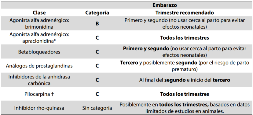 De Benedetti G, Giraldo MJP, Alió J. El dilema del glaucoma durante el embarazo: ¿debe o no tratarse? Rev Mex Oftalmol [Internet]. 2011;85(2):85-92. Disponible en: https://www.elsevier.es/es-revista-revista-mexi- cana-oftalmologia-321-articulo-el-dilema-del-glaucoma-durante-X0187451911238707#:~:text=Sin%20 embargo%2C%20su%20suministro%20sist%C3%A9mico,su%20uso%20durante%20el%20embarazo