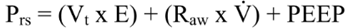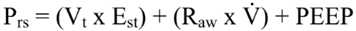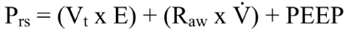 Durante la VM la presión inicial es igual al valor de PEEP, mientras que la Pinsp es sustituida por la presión inspiratoria pico (PIP), que también es conocida como presión máxima en la vía aérea (Pmax). Al sustituirlas en la ecuación: