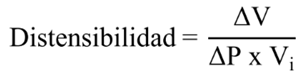 La distensibilidad se refiere a un cambio de volumen con respecto al volumen inicial (Vi), lo cual ocurre con relación a un cambio de presión (14):