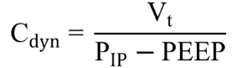 Los valores normales de Cdyn en pacientes bajo VMI son de ~10-20 % del valor de la Cst(9). La interpretación de esta ecuación requiere especial cuidado, ya que la PIP está condicionada por las resistencias agregadas del circuito de ventilación, cánula traqueal y vía aérea de conducción del paciente. Por lo tanto, la PIP tiene un valor más alto que la presión al inicio del flujo de aire en la inspiración. Esto significa que no depende solo de las propiedades del pulmón y de la caja torácica (17).
