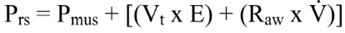 A manera de resumen, la presión ejercida en cada momento en el SR tiene los siguientes componentes: 1) elástico, necesario para la distensión del parénquima pulmonar, 2) resistivo, necesario para hacer avanzar el flujo de aire contra las resistencias de la vía aérea, y 3) inercial, debido a los cambios en el parénquima pulmonar causados por la aceleración del flujo de aire. Por lo tanto, la carga elástica es la presión requerida para vencer la elasticidad del SR y la carga resistiva es la presión requerida para vencer la resistencia al flujo del circuito del ventilador, el tubo endotraqueal y las vías respiratorias. El componente inercial es despreciable y no medible en la cabecera del paciente (25).