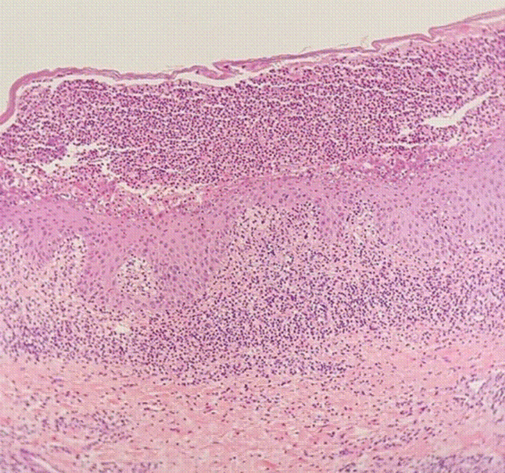 El daño tisular que ocurre en la DPS es secundario a un proceso inflamatorio de origen incierto, derivado de la migración de neutrófilos hacia la parte superior de la epidermis (5). La hiperactivación de los neutrófilos bajo el estrato córneo es favorecida por niveles elevados de factores quimiotácticos, como interleucina (IL) 1β, IL-6, IL-8, IL-10, leucotrieno B4, complemento C5a, IgA y factor de necrosis tumoral alfa (TNF-α) (4,12). Es probable que las variaciones que se presentan en este perfil de mediadores proinflamatorios se relacionen con el espectro de manifestaciones clínicas, severidad y respuesta al tratamiento (13).