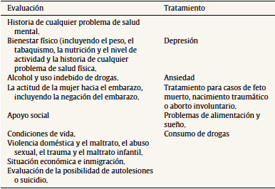 La guía NICE Antenatal and Postnatal Mental Health: Clinical Management and Service Guidance profundiza en la evaluación. A modo de resumen se presentan las principales aportaciones en la tabla 2.